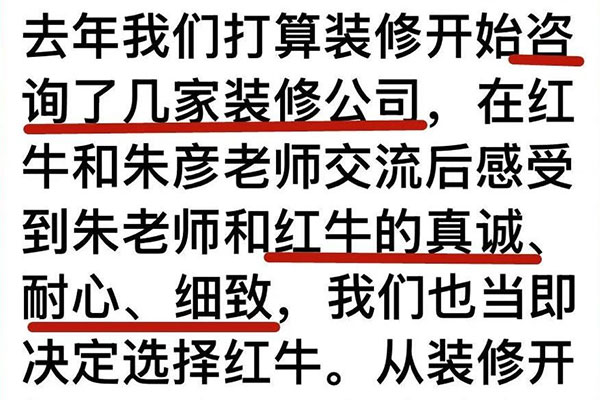 來(lái)自業(yè)主的超長(zhǎng)評(píng)價(jià):始于信任,忠于品質(zhì),見(jiàn)證南京紅牛裝飾口碑的力量!